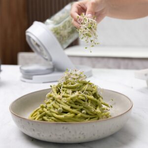– Large ~50oz capacity yields enough sprouts for 1 serving per day for a week. Consider 1 sprouter per sprout eating adult.