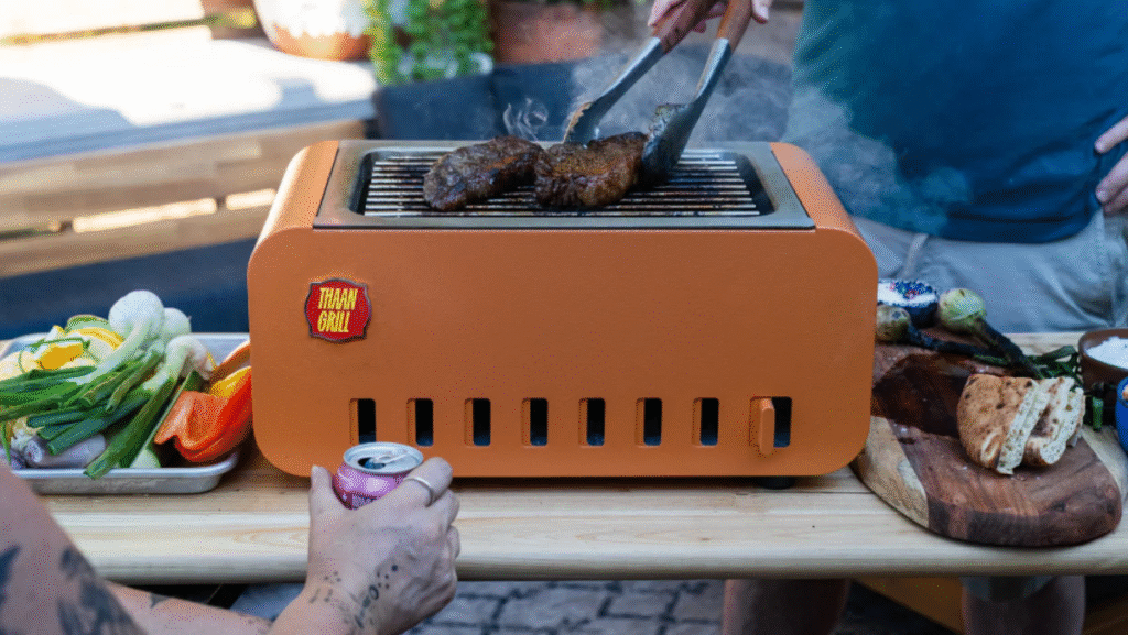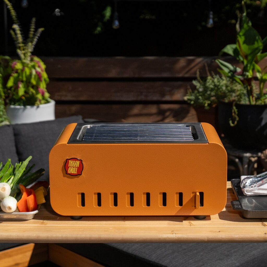 Bring pro-level technique to your BBQ game with the Thaan Grill. It’s a compact, insulated tabletop charcoal grill that delivers authentic charcoal flavor.