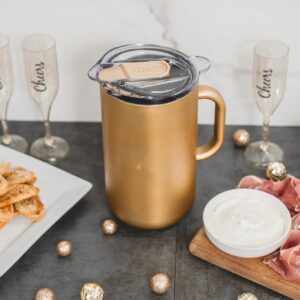 Our served Saffron Pitcher is sure to put some happy on your face, too. If the color alone doesn’t do it, than the 2-liter (66-ounce) stainless steel, copper-lined, vacuum-insul…